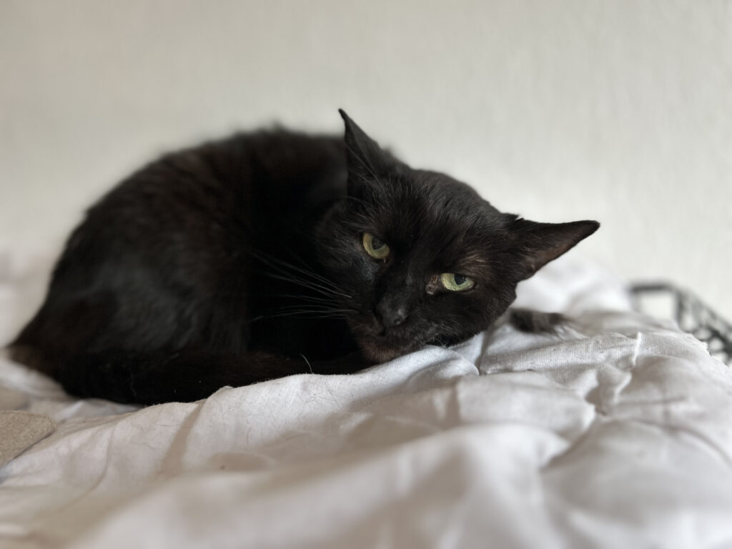Rey je kočička, kterou jsme k nám přijali z odchytu koček z Karlína, které tam už dále nemohly být. Rey i její sestra Leia byly extrémně divoké, jedny z nejdivočejších a nejdrsnějších kousků, co jsme u nás měli. Rey ale postupně zkrotla. Stala se z ní taková trochu kočičí koule a už se nechá i vcelku klidně pohladit.