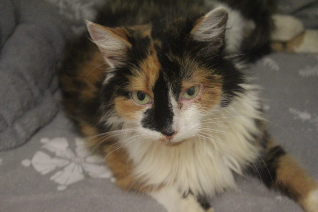 Keta je kočička, která se přidala k hodným lidem v prosinci na zahradu. Byla hladová, kost a kůže a byla jí zima. Bohužel lidé, ke kterým přišla, na místě nebydleli pořád, takže kočku přivezli k nám. Keta je super vděčná kočka, akorát pořád bojujeme s jejím trávením, které má stále hodně rozházené, není divu, po takové době, co hladověla.