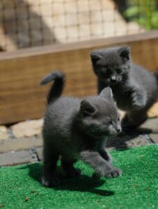 Sisi a Gustav (naroz. asi 9.4.2024) byli nalezeni v papírové tašce u popelnice, když jim bylo jen několik dní a bez kočičí maminky by byli rozhodně umřeli. Naštěstí v jedné skvělé dočasce, která spolupracuje s PSOZ, byla v tu dobu kočička Rozárka, která měla jen jedno koťátko, téměř stejně staré, jako tito dva sirotci a krásně se jich ujala. Od té doby už uplynuly skoro tři měsíce a z obou sourozenců jsou přenádherná, kulaťoučká koťátka, která vypadají jako britské modré. Nyní pro ně hledáme vlastní domov, ale určitě chceme, aby šli bydlet společně – nádherně si spolu hrají a kdyby se rozdělili, byli by nešťastní. Jsou čistotní, velice přítulní a hraví a do konce června budou již očkovaní.