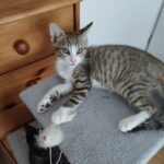 Mateo je hravý hrdina a průzkumník. Jako jediný kluk z vrhu musí vše hned vyzkoušet, a hlavně je potřeba dávat bacha na tetu v dočasce, jestli zametá, vytírá a čistí zachůdky správně. Pohlazení je dobré akorát, když už je unavený, jinak lidské prsty jsou hlavně na hraní ne:)? Všechny myšky, bambulky a mašlicky si odnese a kde se co pohne, je první. Taky si rád hraje s vodou. Když ji vycáká z misky, je pak sranda v ní běhat a klouzat se.
