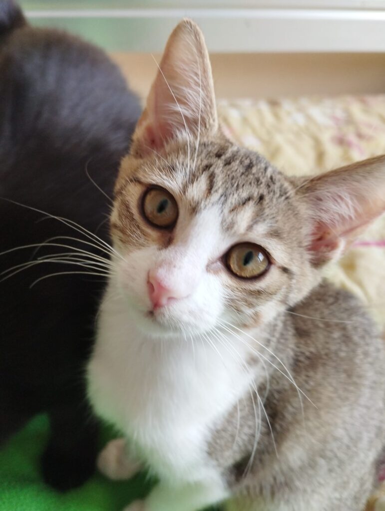 Maja, sladká, hravá a přítulná kočičí holčička se krátce po svém narození, dostala s maminkou a čtyřmi sourozenci do úžasné dočasné péče ve Slaném. Všichni zde spokojeně čekali dva měsíce, aby se mohli naočkovat a putovat do nových domovů. Bohužel, Maja najednou, kolem poloviny září začala polehávat, méně papat a začalo se jí zvětšovat bříško. Na veterině jí diagnostikovali FIP. Ihned jsme nasadili účinnou, osvědčenou léčbu a kočička se brzy vzpamatovala, začala zase papat a hrát si jako předtím a bříško během několika dní opět splasklo.
