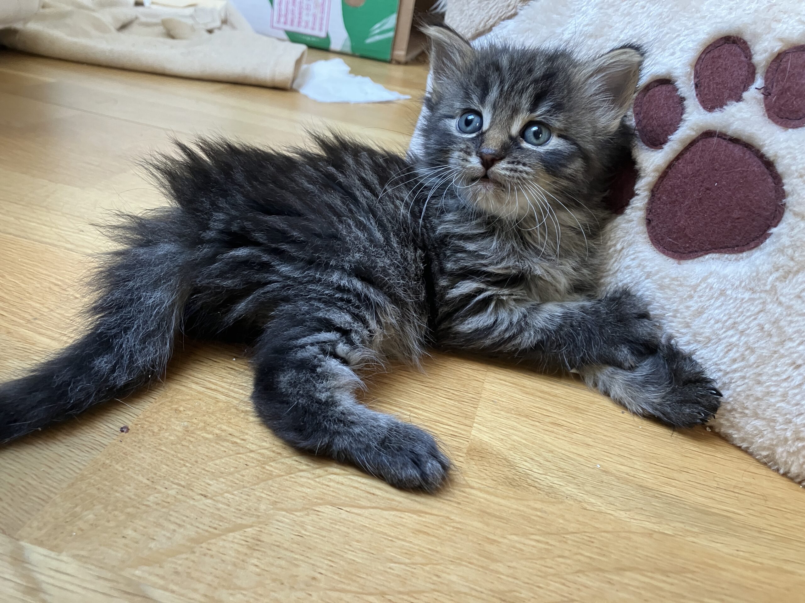 Wolf je jedno z mourovaté nadílky, kterou na konci dubna porodila kočička Tanuki. Tanuki jsme přijali po zemřelé paničce s tím, že by měla být kastrovaná. Bohužel opak byl pravdou a Tanuki čekala už skoro hotová koťátka. Všichni sdědili barvu po mamince a tak v červenci budeme hledat domov pro tyhle mourovaté uzlíčky i jejich maminku. Koťátka budou k odběru ve druhé půlce července, zatím jsou ještě malá a potřebují čas s maminkou jako sůl. Kdybyste se na ně nezávazně nebo závazně chtěli podívat, ozvěte se nám!