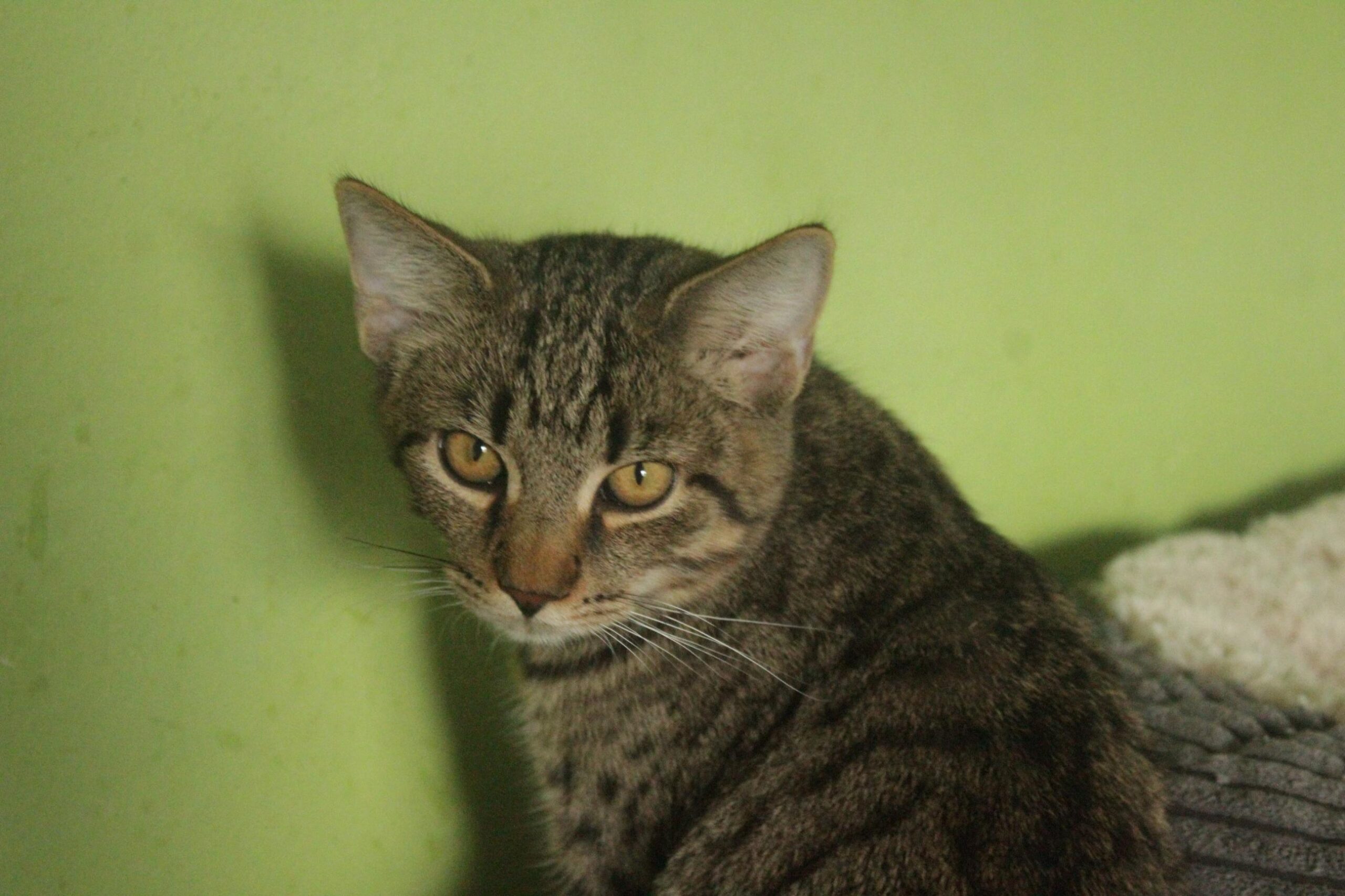 Ginny, Gavin a Garfield k nám přijeli v červnu, byly to malé chlupaté kuličky. Hned putovali do naší super dočasné péče na VInohradech, kde z nich vyrostli velké kočky - a nestačili jsme se divit, během půl roku z nich byly skoro čtyřkilové kousky. Je tedy možné, že jeden z jejich rodičů mohl být mainský nebo nějaká podobná rasa, ale to se už nikdy nedozvíme. Gavin a Garfield už díky své super povaze našli domov, ale Ginny ho pořád nemá.