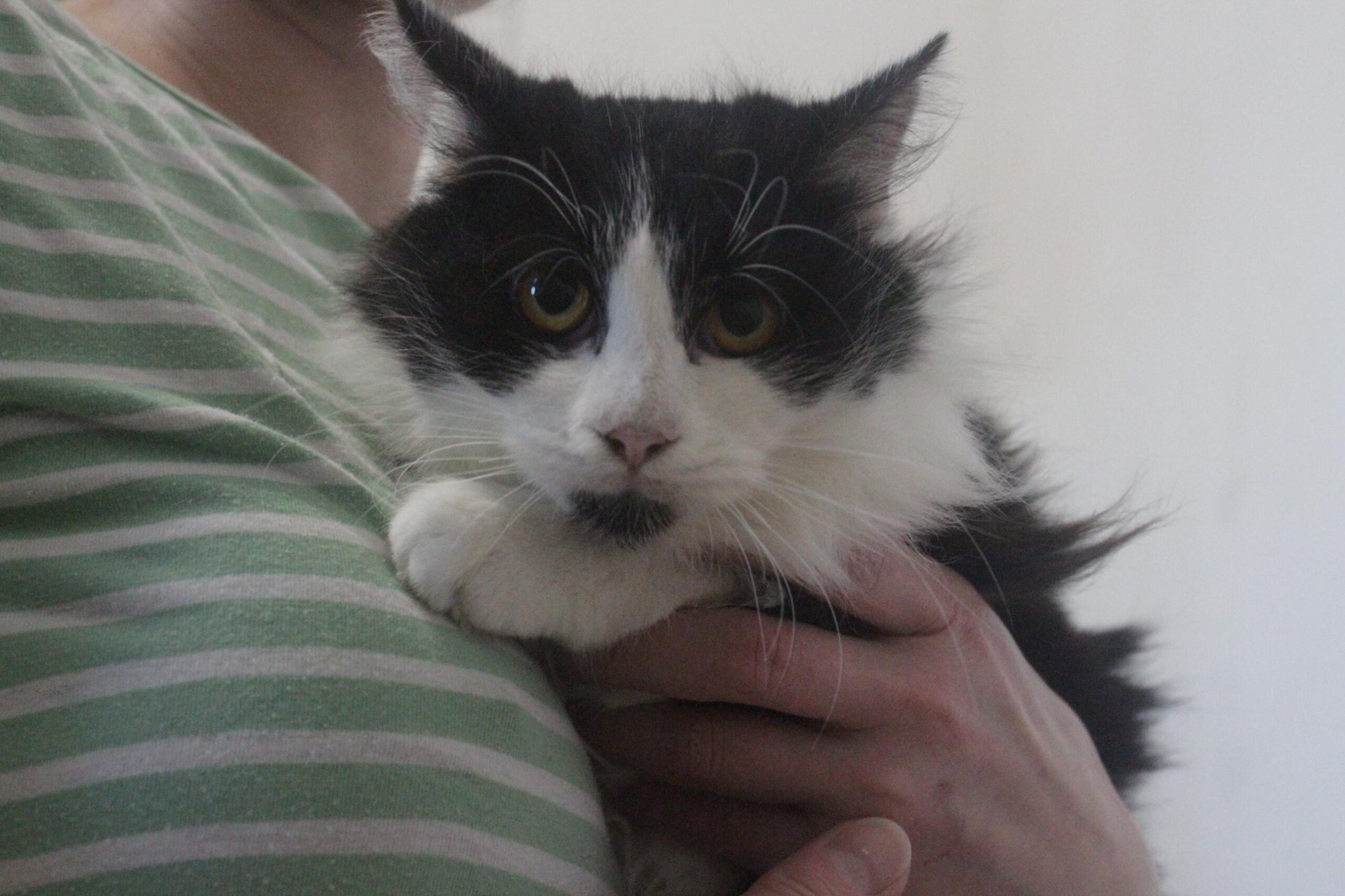 Osmiměsíční koťátka, Chloe a Connor. V těch všech kočkách a shonu jsme vám je ani nestihli představit. Oba pochází ze situace, kde paní přerostly její kočky přes hlavu a tyto dva už mít nemohla. Chloina i Connor jsou oba takový ustrašenci. Nejsou úplně divocí, žádné sekání ani kousání se nekoná, ale před lidmi se prostě schovávají. V kotěcím pokoji se spokojeně schoulí k plašánlům do skrýše. Ale my bychom byli moc rádi, kdyby unikli osudu plaché útulkovky a stihli najít domov, než úplně vyrostou. Sice se hodně bojí, ale socializovaní jsou. Když byli v kleci při příjmu, mazlili se. My bychom jen potřebovali, aby se našel někdo, kdo by si takové ustrašené kuličky zamiloval, protože bohužel v útulku není čas na pořádnou socializaci a na mazlení. Oba dva jsou očkovaní, čipovaní, Connor je kastrovaný a Chloe kastrace čeká v nejbližších dnech a týdnech. Oba jsou u nás v Klecanech a čekají na svoji šanci. Ideálně bychom si přáli společný domov, ale zrovna u nich to není podmínkou. Jen bychom byli neradi, aby Connor našel domov díky své delší srsti a Chloinka zůstala na ocet.